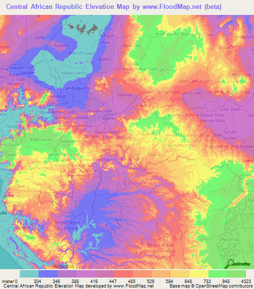 Central African Republic Elevation and Elevation Maps of Cities ...