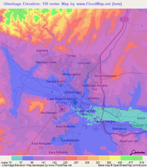 Elevation of Uitenhage,South Africa Elevation Map, Topography, Contour